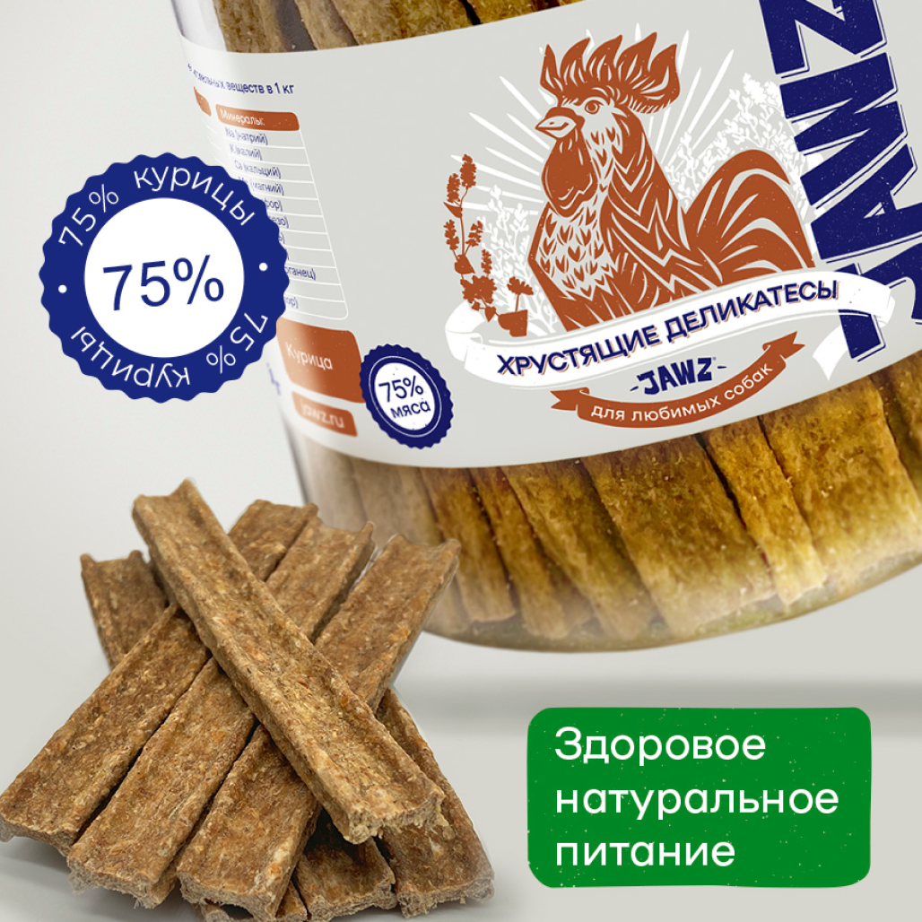 Высокие стандарты качества «Хрустящие деликатесы» JAWZ отвечают стандартам качества «human grade». Они производятся в соответствии с высокими требованиями к санитарной среде и производственным процессам, применяемым для приготовления человеческой пищи.